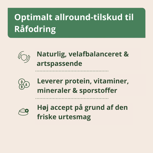 Naturlig og biologisk ernæring hvor din firbenede ven får en god og afbalanceret næring.