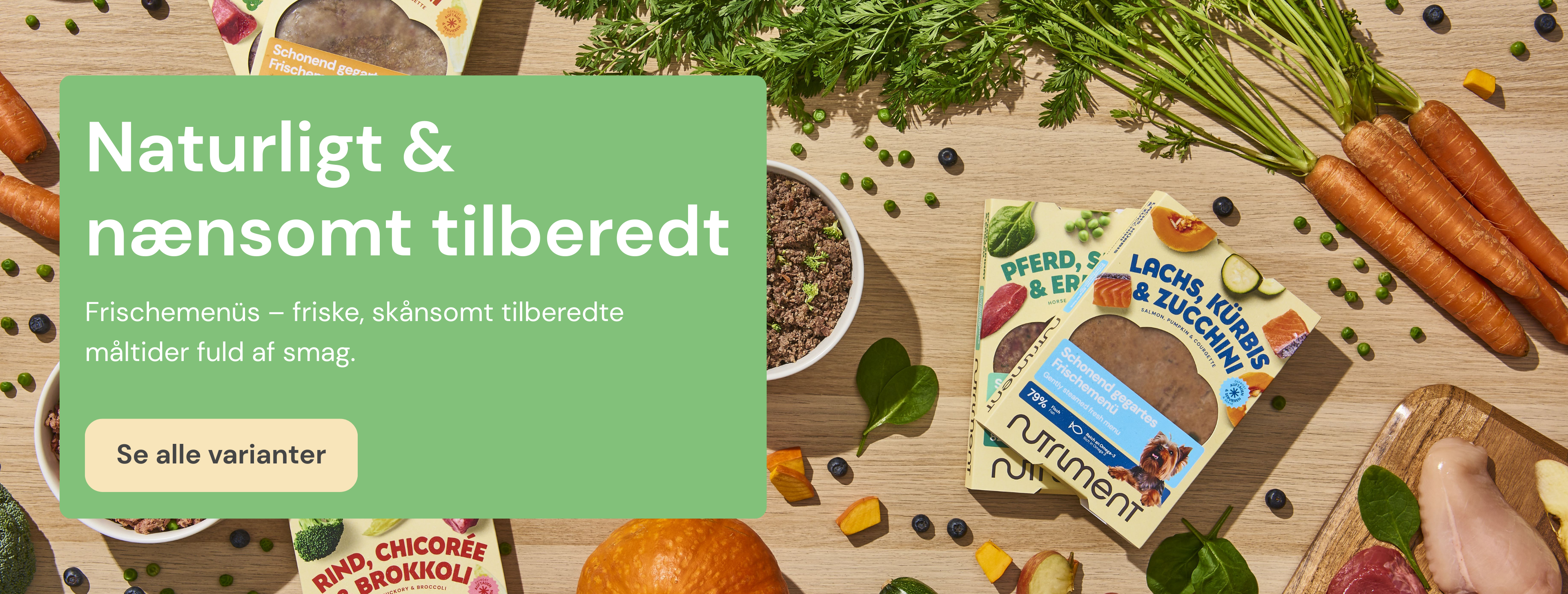 Hos Nutriment får dit kæledyr rigtig mad – lavet af naturlige råvarer, fyldt med næring og helt uden fyldstoffer. Vores måltider er skabt til at give dit kæledyr det bedste – og gøre din hverdag lidt nemmere.
