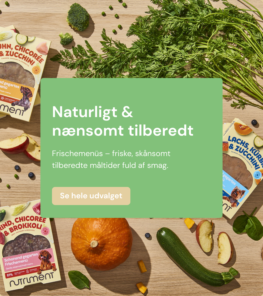 Nutriment står for naturlig, næringsrig og gennemtænkt hundemad – af høj kvalitet, ukompliceret og velegnet til hverdagsbrug. Vi mener, at fodring er mere end bare en rutine, det er et udtryk for kærlighed. Derfor tilbyder vi sunde måltider af den bedste kvalitet, også når det skal gå hurtigt. Vores produkter udvikles i samarbejde med eksperter og hundeejere, produceres i Europa og indeholder kun udvalgte ingredienser.