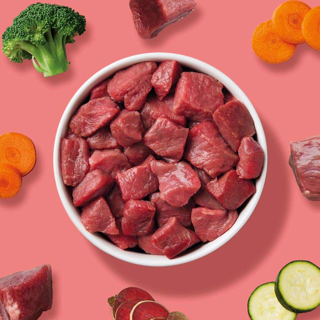 Oksemenuen kommer som en alt-i-en-foder, og kan derfor anvendes som fuldfoder til hunden. Menuen er især god som hundemad til mindre hunde, da den er inddelt i mindre stykker, der hver vejer 25g så det er nemt at dosere.